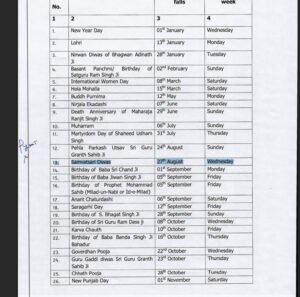 ਇੱਥੇ ਦੱਸ ਦਈਏ ਕਿ ਸਾਲ 2025-26 ਦੀਆਂ ਛੁੱਟੀਆਂ ਦੇ ਕੈਲੰਡਰ ਵਿਚ ਪੰਜਾਬ ਸਰਕਾਰ ਵੱਲੋਂ 28 ਰਾਖਵੀਆਂ ਛੁੱਟੀਆਂ ਦਿੱਤੀਆਂ ਗਈਆਂ ਹਨ। ਪੰਜਾਬ ਸਰਕਾਰ ਵੱਲੋਂ ਜਾਰੀ ਨੋਟੀਫ਼ਿਕੇਸ਼ਨ ਮੁਤਾਬਕ ਸਰਕਾਰੀ ਮੁਲਾਜ਼ਮ ਇਨ੍ਹਾਂ 28 ਰਾਖਵੀਆਂ ਛੁੱਟੀਆਂ ਵਿਚੋਂ ਕੋਈ 2 ਰਾਖਵੀਆਂ ਛੁੱਟੀਆਂ ਲੈ ਸਕਦੇ ਹਨ। ਇਨ੍ਹਾਂ ਛੁੱਟੀਆਂ ਦੀ ਸੂਚੀ ਵਿਚ ਹੀ 27 ਅਗਸਤ ਦੀ ਛੁੱਟੀ ਵੀ ਸ਼ਾਮਲ ਹੈ।
