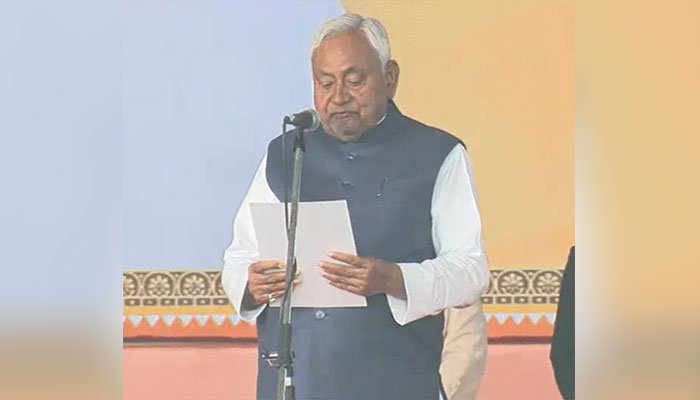 – ਸਹੁੰ ਚੁੱਕਣ ਤੋਂ ਬਾਅਦ ਪ੍ਰਧਾਨ ਮੰਤਰੀ ਨਾਲ ਹੱਥ ਮਿਲਾਇਆ ਬਿਹਾਰ ——- ਨਿਤੀਸ਼ ਕੁਮਾਰ ਨੇ 10ਵੀਂ ਵਾਰ ਬਿਹਾਰ ਦੇ ਮੁੱਖ